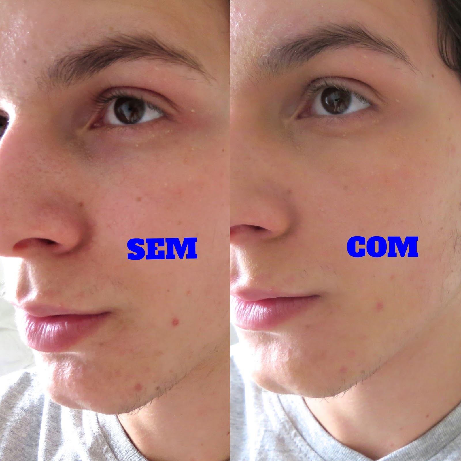 Acho que da para perceber uma diferença na olheira, ao redor do nariz e em algumas espinhas. Não passei muito para mostrar a verdadeira cobertura dele, mas se você quiser passar um pouquinho mais, você pode. Normalmente eu não ligo muito para as espinhas, mas deixo a olheira bem coberta. Esse tio de coisa é pessoal.